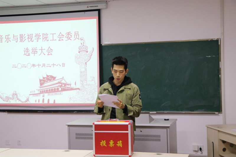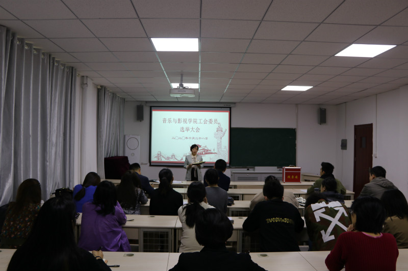 2020年10月28日下午,音乐与影视学院第一届工会委员选举大会在白云校区艺术2号楼楼218室召开。出席会议的有学院党政领导和全体会员,会议由学院党总支书记唐琳主持。