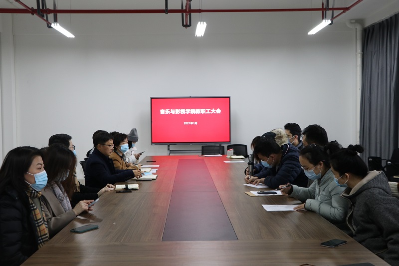 1月23日,音乐与影视学院召开教职工大会暨工会会员大会,院领导班子和全体工会会员参加大会,会议由院党总支书记唐琳主持。