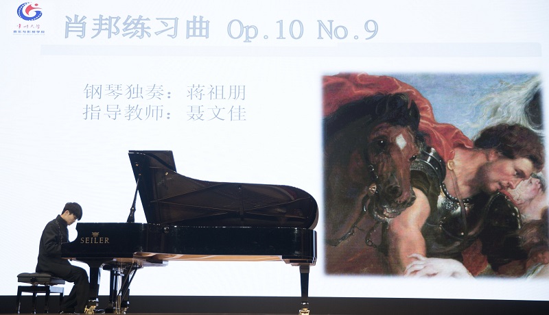音乐会在一首欢快的舞曲中拉开序幕,《Georgina Polka》这首舞曲曲调轻快,活泼,层次丰富,体现出作曲家慷慨激昂的内心世界;《Suite Bergamasque I .Prelude》是法国作曲家德彪西在钢琴领域奠定印象派技法的里程碑之作。它表达了一种庄严,肃穆,高贵的情感,神秘得好像希腊雕像那永恒的微笑;《春舞》是美籍华裔钢琴家孙以强于1980年创作的一-首钢琴作品,乐曲富有浓郁的新疆少数民族清新明快的特点,展现了一幅边疆人民跃马扬鞭,载歌载舞的壮观场面;旁塞的《intermezoo No1》创作于1909年,整首乐曲都给人一种忧郁的感觉,这是一首思乡曲,一首哀叹青春消逝的悲歌,故乡碎石铺砌的小巷里传来的喃喃私语,月光下漫步的畅想…都在这首曲子中回荡;莫扎特《d小调幻想曲》创作于1782年,是他的晚期作品,也是莫扎特三首幻想曲中最重要的一首。整个主题具有忧愁和哀伤的性格特点,运用上采用了大胆,新颖的手法,体现出了作品内心的矛盾和发展;《Arabesque No.1》是作曲家德彪西的阿拉伯风格曲,速度与力度玄妙的变化,时而舒缓恬静的感觉,时而急促紧张;《八度练习曲》是俄罗斯作曲家卡本良斯基的作品。 八度技巧是钢琴技巧中必须要掌握的最基本的技巧之一,手腕灵巧的动作,带有幻想的感觉,音色较为暗淡,情绪较为平和,像一个故事开始轻轻叙述;《C大调钢琴小奏鸣曲op55.no3》这首作品中充满了对现实的不满和愤慨以及对英雄人物的刻画和呼唤,呼唤英雄人物带领人民走向自由和平;《Etudes Op 740 No.4》此曲是一首训练右手三度快速跑动的乐曲,乐曲短小精致,结构工整,旋律错落有致;《b小调圆舞曲Op.4No.4》,1829年肖邦创作此曲时才19岁,在陌生的环境下,自己独特的创作方式,把思念家乡的情绪寄托在旋律中,催人泪下;普罗科菲耶夫的著名钢琴小品《魔鬼的诱惑》,在这首曲中,高音、低音不断穿插,和弦与主调相互交织,充满托卡塔式律动和敲击风格,极端音区和力度夸张的变化对比很有力的表现了作品的谐谑讽刺特征。