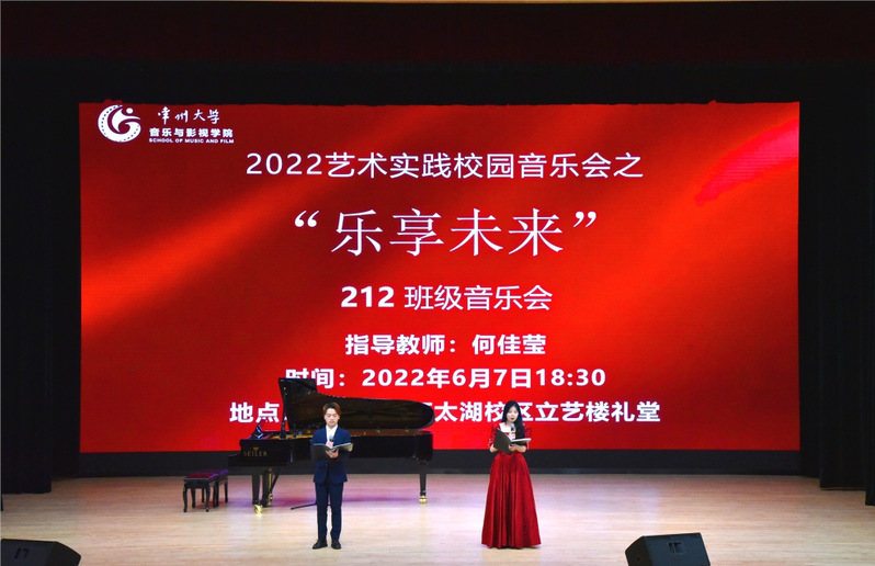 为了进一步展示学院教学成果,搭建艺术实践平台,促进学生成长成才,使同学们在实践中“受教育、长才干、做贡献”,6月7日晚18:30,音乐与影视学院212班“乐享未来”班级音乐会在西太湖校区立艺楼礼堂拉开帷幕。此次音乐会由何佳莹老师指导,院长熊祖鹏、院长助理李久晨、音乐系教授王成文及各青年教师作为评委观看了本场演出。