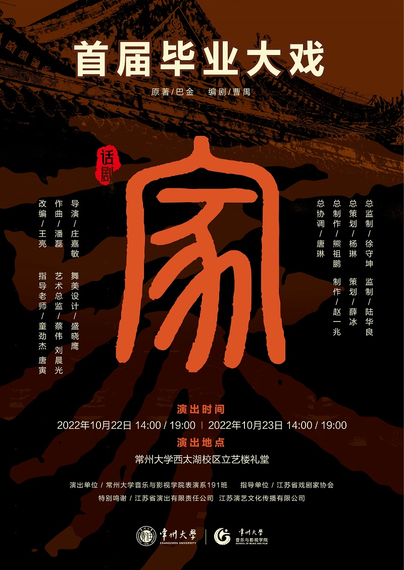 10月22日-10月23日 经典话剧《家》——音乐与影视学院表演191班毕业大戏