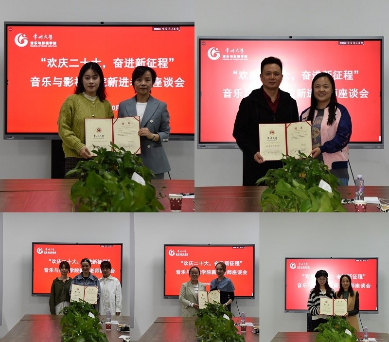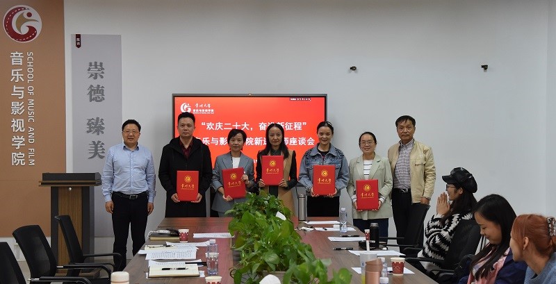 欢庆二十大,奋进新征程。为展示新时代伟大成就,凝聚新征程奋进伟力,以实际行动欢庆党的二十大胜利召开,同时也为欢迎新教师,帮助新教师尽快转变角色、融入音乐与影视学院大家庭,10月19日下午,学院在立行楼442会议室举办了2022年新引进教师座谈会。校关工委副主任袁能老师、学院党政领导班子、新教师及教师代表参加此次会议,会议由副院长赵一兆主持。