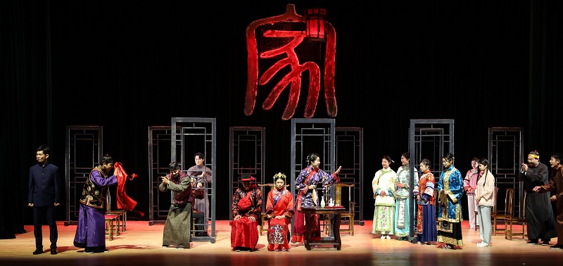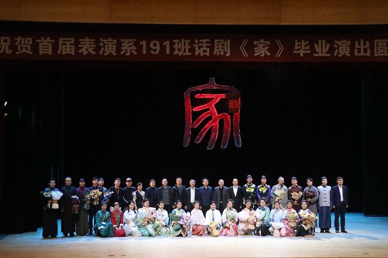 毕业大戏是表演专业学生完整塑造人物,全面掌握表演技巧并完成舞台应用的重要学习阶段。通过大戏,可以检验学生对剧本所拥有的文学艺术的理解程度,对人生社会的认知程度,及对于表演专业的实际操控的程度。本次毕业大戏所选剧本《家》由著名剧作家曹禺先生根据文学大师巴金先生的小说《家》改编而成,故事发生在五四运动前后,描绘封建大家庭中年轻一代的痛苦磨难和成长,舞台上两个多小时的话剧层层递进,描绘出一幅大家族生活的画面,描摹着一个封建家族的溃败衰弱。矛盾软弱的觉新,天真热烈的觉慧,满腹愁绪的梅,善良温柔的瑞珏,刚烈不屈的鸣凤……一个个鲜活的人物在动人的演绎下,仿佛从书中走出。在华人直播 表演专业负责人、国家一级演员蔡伟教授、学院教师团队指导下,表演191班全体学生展现出成熟的表演技巧与昂扬向上的青春活力,精彩的演出获得在场观众一致好评。