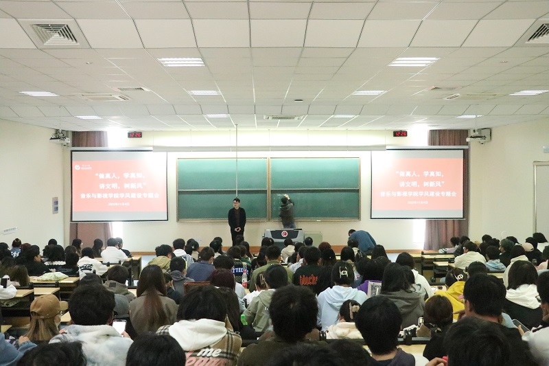 为进一步加强学院学风建设、营造良好的学习环境,11月4日下午,音乐与影视学院音乐系开展“做真人、学真知,讲文明、树新风”学风建设专题会。学院党政领导班子、音乐专业负责人王成文教授、音乐系主任李久晨老师、辅导员老师以及全体音乐系学生参加本次会议,会议由副院长赵一兆主持召开。