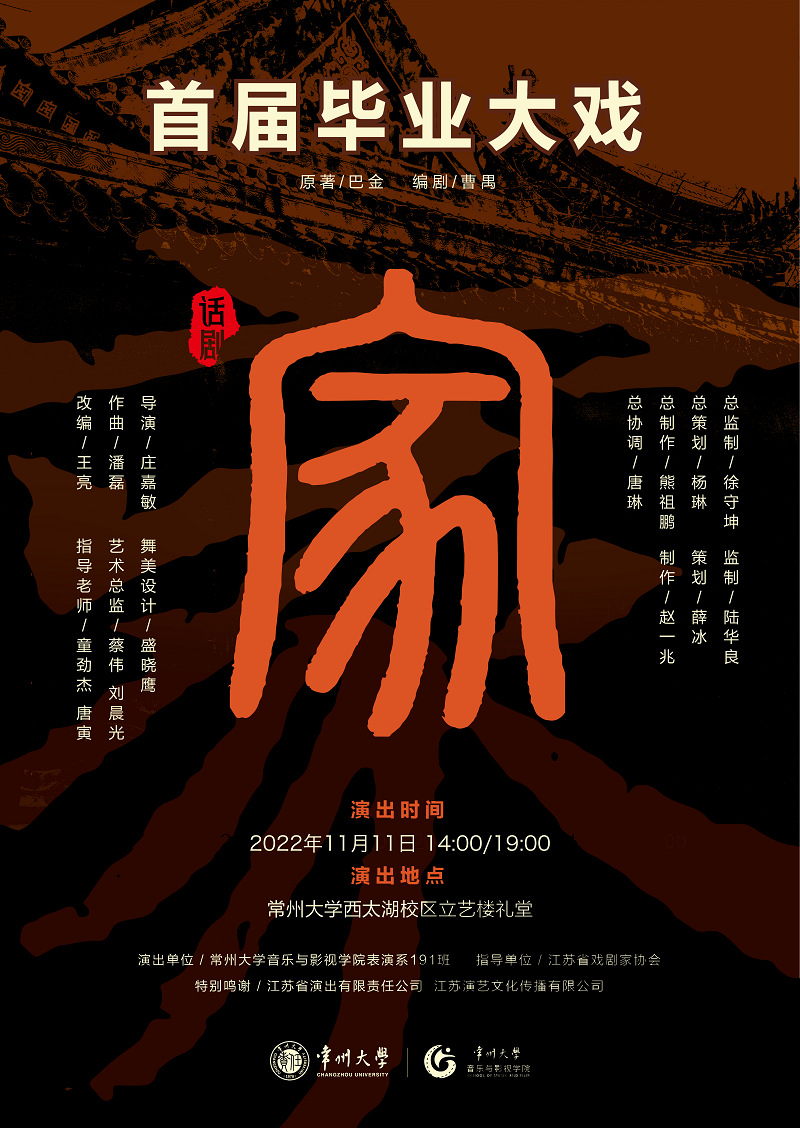 11月11日14:00/19:00 经典话剧《家》加演——音乐与影视学院表演191班毕业大戏