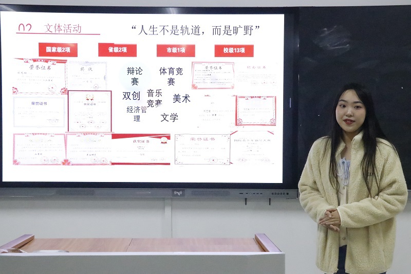 优秀学子邵宇同学围绕“守正,创新,融合,发展”马克思主义新思想展开话题,在讲述的过程中,他展示了自己的学业成长、学院工作、社会实践、竞赛创新经历,并强调了做好规划的重要性。他指出,身为大学生,应在守正上务实基础,稳扎稳打;在融合上精诚合作,携手奋进;在创新上惟变所出,万变不从;在发展上迎难而上,攻克难关。活动最后,两位优秀学子与场下学生就学业上的问题进行了交流和探讨。