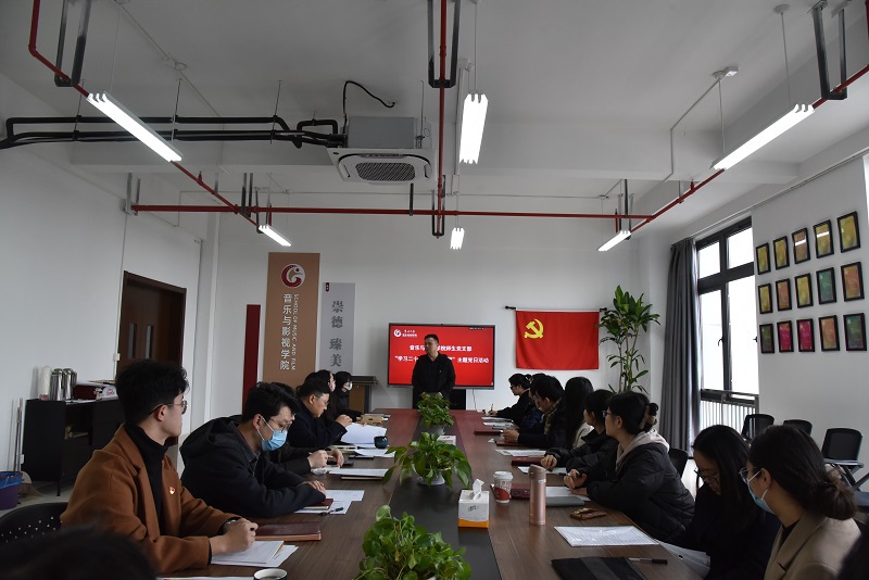 音乐与影视学院师生党支部于2月22日下午,组织进行“学习二十大,奋进新征程”主题党日活动,本次活动由支部书记王成文主持,支部全体党员参加活动。