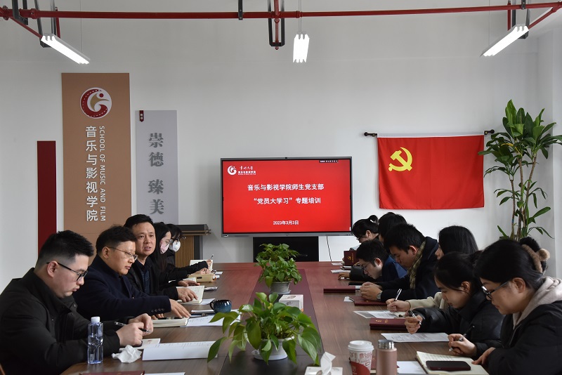 2023年3月3日,音乐与影视学院师生党支部在立行楼442会议室集中开展“党员大学习”专题培训活动,活动由师生支部书记王成文主持,支部全体党员参加会议。