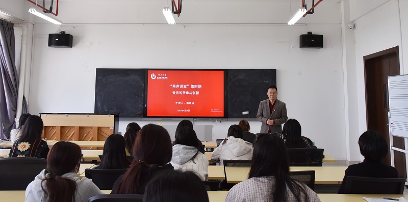 4月26日下午,音乐与影视学院在立行楼427教室举办“希声讲堂”第四期讲座,讲座由副院长王成文主持,学院各专业专任教师和学生参加讲座。