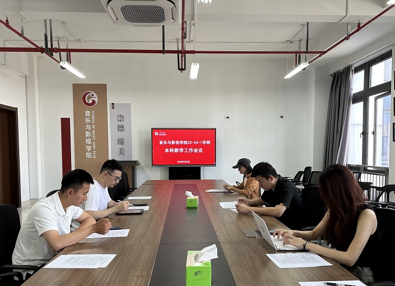 9月2日上午,音乐与影视学院召开23-24学年第一学期本科教学工作会议,会议由副院长赵一兆主持并发言,学院各系部负责人参会。