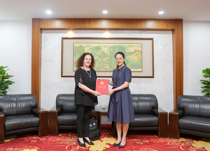 杨琳为戈尔茨坦教授颁发了华人直播 客座教授荣誉聘书,戈尔茨坦女士也向华人直播 赠送了自己出版发行的唱片留作纪念。