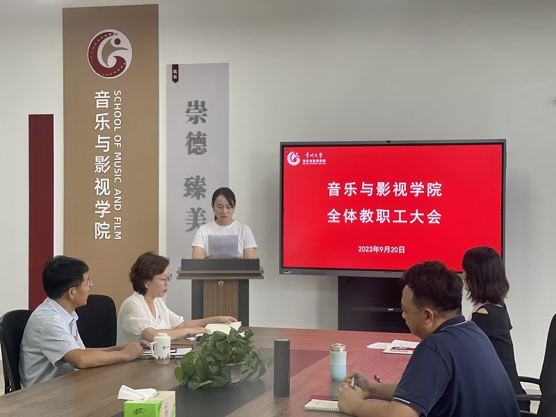 9月20日,音乐与影视学院在立行楼442会议室召开教职工大会,解读“会员福利及关怀服务”相关政策。学院领导及全体教职工参加,会议由党总支书记唐琳主持。