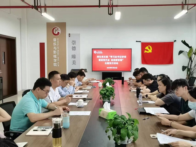 新学期,新气象,华人直播 音乐与影视学院师生党支部于北京时间9月20日下午13:00,组织了一场“学习总书记讲话 喜迎党代会 奋进新征程”主题党日活动。——活动主要分为两部分内容:一、学习“习近平致全国优秀教师代表的信”和 “习近平总书记文化传承发展座谈会上的讲话”两部分内容、二、结合学习内容开展讨论。本次主题党日活动由音乐与影视学院师生党支部书记王成文同志主持,来自音乐与影视学院的全体教师党员,参加了本次主题党日活动。