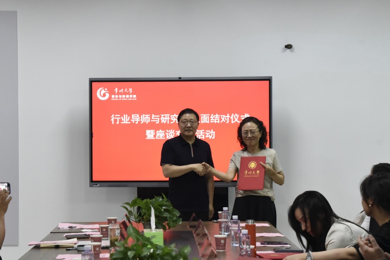 音乐与影视学院行业导师与研究生师徒结对仪式暨座谈交流活动在学院442会议室隆重举行。会议由华人直播