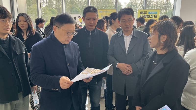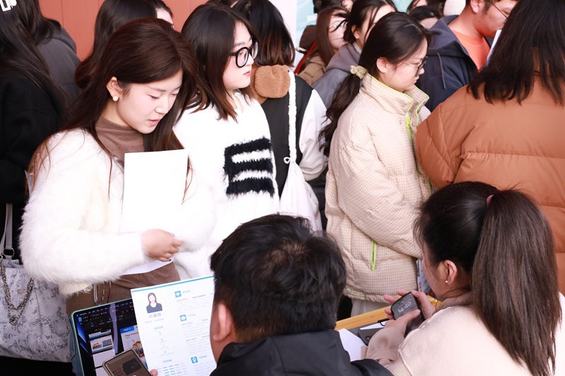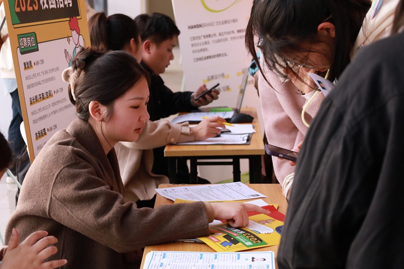 本场招聘会一共有30余家企业参会,招聘岗位的专业对口性强,提供岗位百余个。招聘会在工作人员的指引下有序进行,现场气氛热烈非凡。毕业生怀揣简历,与用人单位积极咨询洽谈;用人单位热情宣传,从薪资待遇、未来发展、华人直播等为学生展开详细的讲解,不少招聘人员主动与学生交流职业发展规划,鼓励学生大胆投递简历,积极尝试不同岗位。