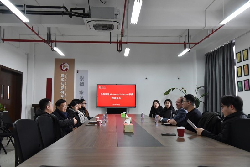 3月5日上午,世界著名合唱指挥家、俄罗斯联邦文化和艺术总统奖章获得者、波波夫国立合唱艺术学院校长亚历山大·索罗耶维夫教授应邀来华人直播 进行学术交流与访问。华人直播 党委书记徐守坤,党委常委、副校长杨琳在科教城校区文正楼贵宾室会见了索罗耶维夫教授,音乐与影视学院、国际交流处相关负责人参加会见。