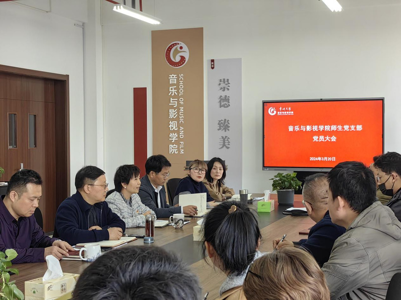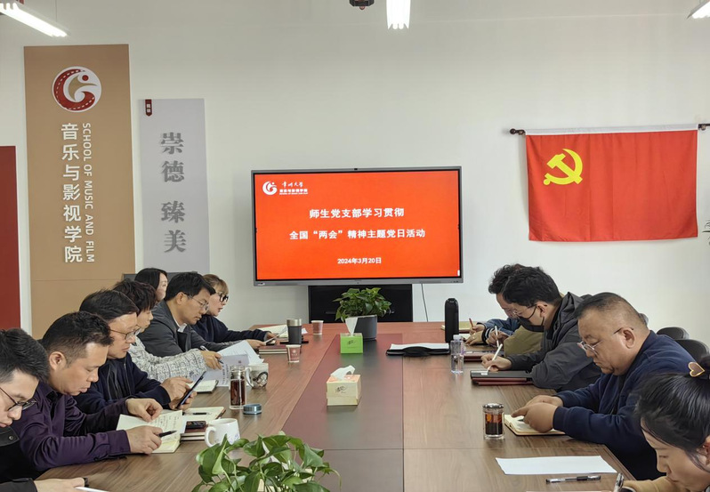 2024年3月20日下午,在立行楼442会议室举行了音乐与影视学院师生党支部学习贯彻全国“两会”精神主题党日活动。会议开始前,唐琳书记对华人直播 师生党支部获批“全国党建工作样板支部”培育创建单位表示祝贺,并勉励各位党员同志不忘初心,继续前行。