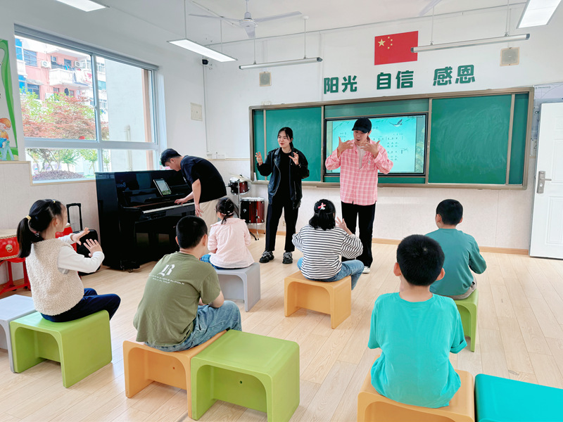 近日,音乐与影视学院学生党员前往常州市钟爱学校开展“愈见音乐”疗愈活动,为患有自闭症和唐氏综合征的四年级小朋友带来了别开生面的音乐课。
