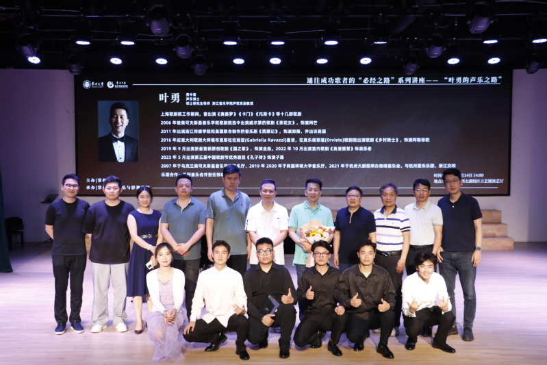 6月14日下午,音乐与影视学院开展“通往成功歌者的必经之路”系列沙龙讲座第一讲----“叶勇的声乐之路”。浙江音乐学院声歌系硕士生导师、青年男中音歌唱家叶勇教授应邀来我院开展沙龙讲座暨公开课。音乐与影视学院领导班子、声乐教研室全体教师和声乐主项学生参加此次讲座。