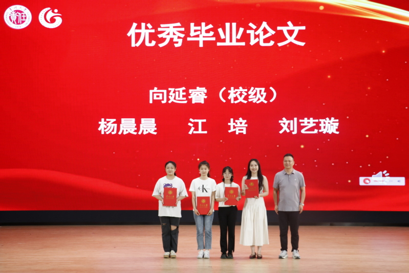 音乐202刘艺璇作为优秀毕业生代表发言,回顾了在常大成长的点点滴滴,呼吁在场的每⼀位同学都能秉持常⼤⼈“勇担责任,追求卓越”的精神,不忘初⼼、砥砺前⾏。表演系教师陈思含作为教师代表发言,叮嘱同学们要保持对专业的热心、对自己的信心和对未来的耐心,做不断努力的追寻者。在表彰环节,学院为优秀毕业生标兵、优秀毕业生、考研先进个人、学科竞赛优秀个人、优秀毕业论文、毕业论文优秀指导教师、江苏建设卓越奖教金、江苏建设奖学金获得者颁奖,充分发挥榜样作用,激励学院师生拼搏奋进,昂首向前。随后,院党总支书记唐琳上台与毕业生代表互赠礼物,副书记褚衍松为校友联络人颁发聘书。