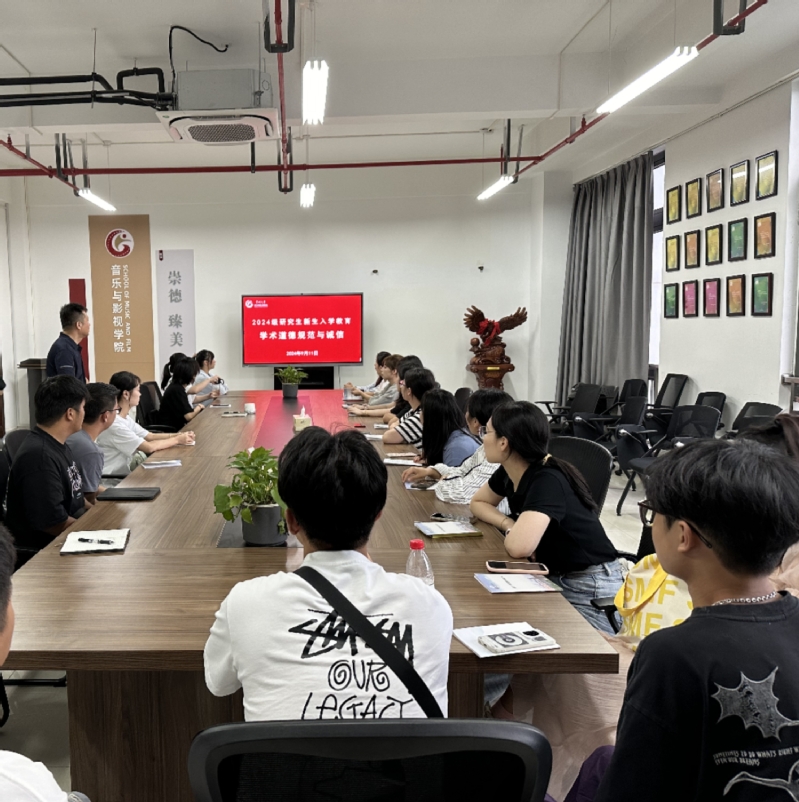 为增强2024级研究生新生学术道德意识,提升研究生科学道德和学术规范素养,引导新生树立正确的学术观念,坚守学术诚信,杜绝学术不端行为,9月11日下午,学院在立行楼442室开展了2024级研究生新生学术道德规范与诚信教育。副院长王成文,院长助理李继祯,音乐教育专业方向负责人柴广育教授以及2024级全体研究生新生参加活动。