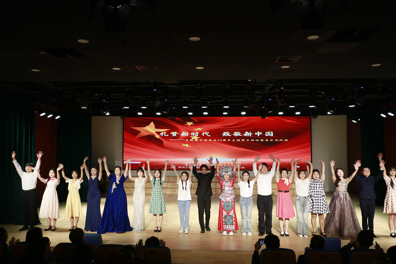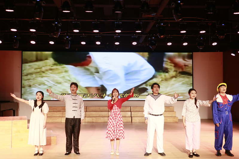 歌声激昂,忆往昔峥嵘岁月;初心回响,赞盛世山河无恙。近年来,音乐与影视学院党总支高度重视铸魂育人,不断丰富主题党日活动和思政教育开展的形式和资源,注重将党建工作与专业教学深度融合,思政教育与音乐艺术有机融合,特别是通过深入挖掘艺术类活动中的思政元素,以美育人、以美化人,打造了鲜活的主题党日活动和音乐思政课。此次“礼赞新时代 致敬新中国”主题党日活动暨音乐思政课,由音乐系教师段苏珊和她的18名不同年级的学生共同策划演出。活动以演绎经典歌曲的方式向祖国献礼,用音乐讲述新中国从站起来到富起来再到强起来的发展历史,用歌声表达对祖国的美好祝愿。