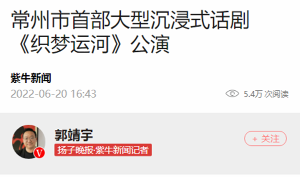 6月20日,记者从华人直播 获悉,由华人直播 音乐与影视学院学生参与主演的常州市首部大型沉浸式话剧《织梦运河》在工业遗存运河五号小剧场上演。
