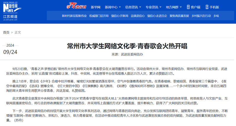 新华网:常州市大学生网络文化季·青春歌会火热开唱_新华网江苏频道 (xinhuanet.com)