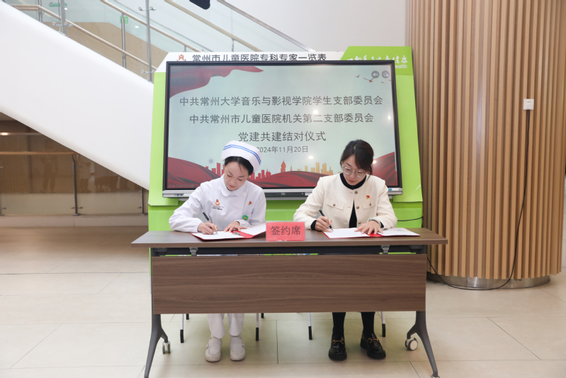 为进一步推进党建高质量创新发展,充分发挥互融互促、优势互补作用,11月20日,音乐与影视学院学生党支部与常州市儿童医院机关第二党支部在儿童医院门诊大厅,开展了结对共建签约仪式。学院党总支副书记褚衍松、学生党支部书记李思琦、学生党员和积极分子参加了活动。
