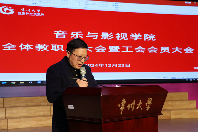 1223日下午,学院在立艺楼演艺厅举行全体教职工大会暨工会会员大会。会议由褚衍松主持。
