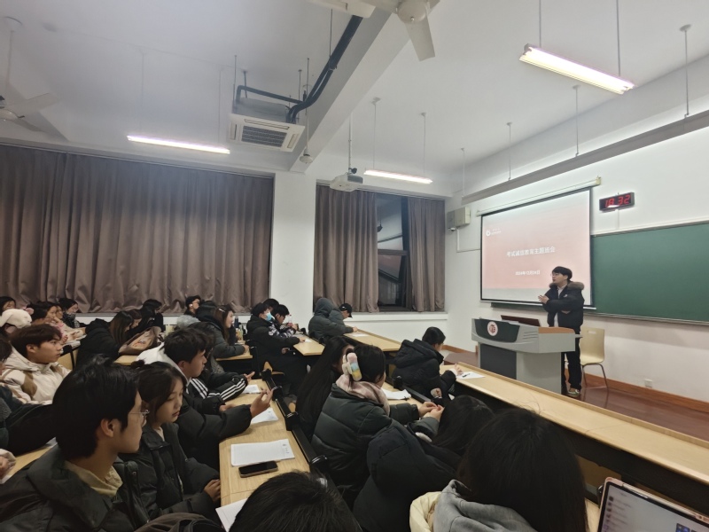 会议指出,诚信不仅是个人品德的体现,也是学术道德的基础,更是社会公正的保障;考试不仅是对知识的检验,更是对人格的考验,希望同学们在考试中展现真实水平、尊重知识、尊重他人、尊重自己。随后,辅导员以实例为引,详细阐述了考试作弊的严重后果,向学生们普及了学校对于考试作弊的处理规定,提醒大家要对自己的行为负责,从心底敬畏规则。