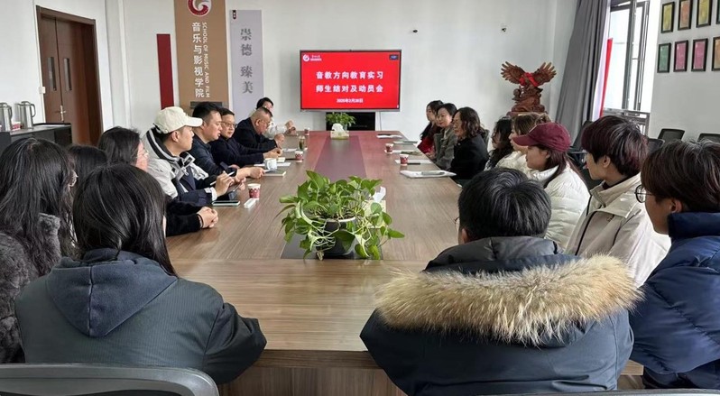 2月28日,音乐与影视学院2023级艺术硕士(音乐)研究生教育实习动员大会在学院442会议室顺利召开。会议由学院副院长王成文教授主持。会议上全面部署了研究生教育实习工作,明确实习目标与要求,搭建校内外协同育人平台,为研究生实践能力提升奠定坚实基础。熊祖鹏院长、音乐教育方向负责人柴广育教授、硕士生导师韦玲玲副教授、巩凡副教授,以及校外行业导师蒋忱校长、李珊珊老师、王明霞老师及全体2023级音乐教育专业研究生参会。