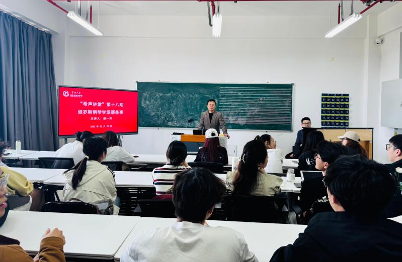 3月26日下午,学院在立行楼429室举办“希声讲堂”第十八期讲座《俄罗斯钢琴学派那些事》(第一课)。讲座由副院长王成文主持,学院钢琴专业教师、全体研究生及钢琴主项本科生参加讲座。