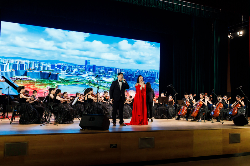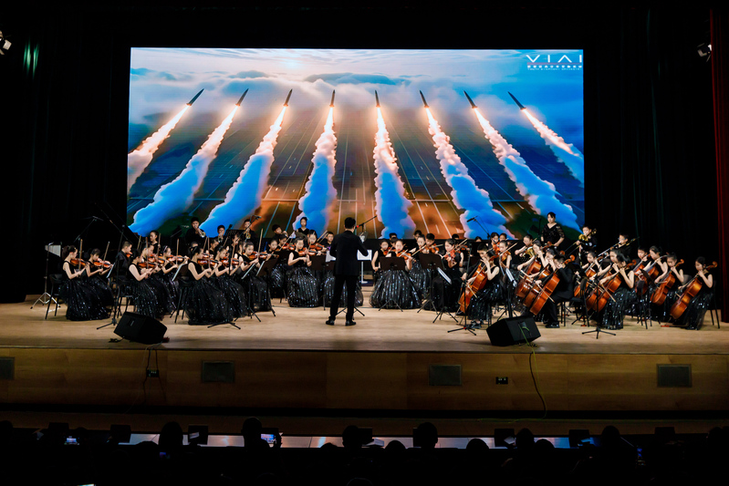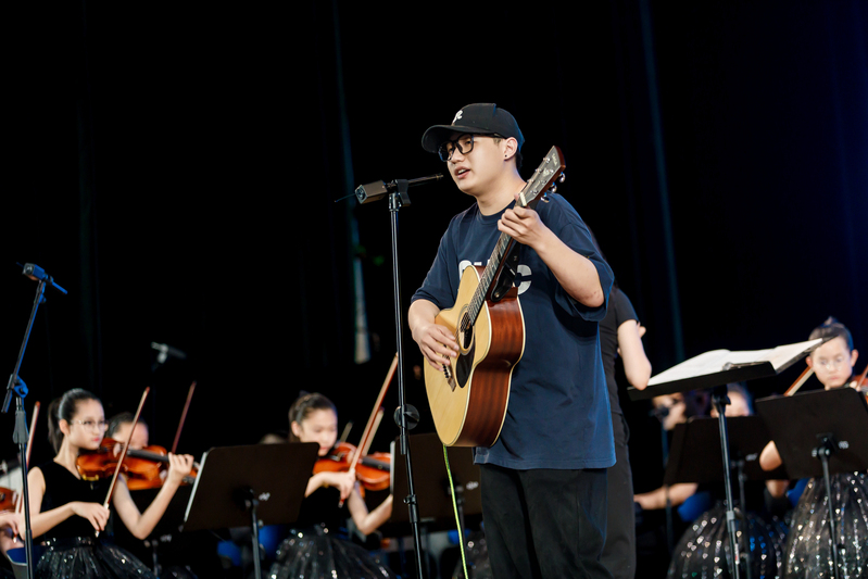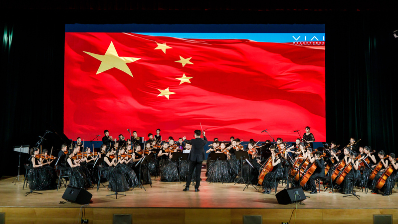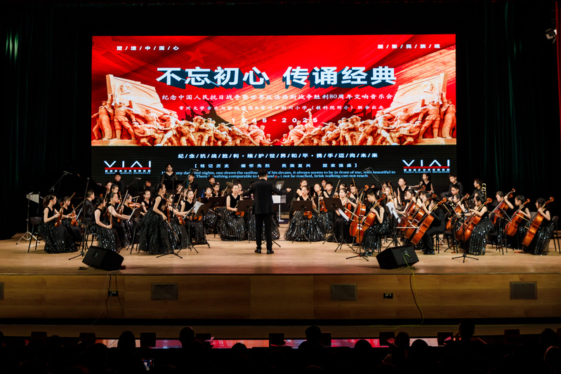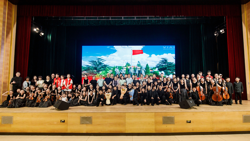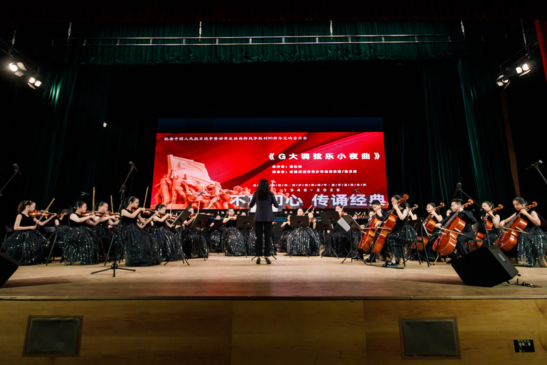 音乐会在《钢铁洪流》激昂的旋律中开场,将观众带入了那个烽火连天的年代。紧接着,《荒原骑兵》以紧凑节奏勾勒战斗场景,仿佛重现骑兵冲锋陷阵的飒爽英姿;《就是哪吒》传递无畏勇气,正如抗战中无数志士“明知山有虎,偏向虎山行” 的决绝;《Hand Clap》《铁血丹心》《世界赠与我的》等曲目,或轻快或激昂,用音符诉说着各种情感;《海阔天空》巧妙地融合了经典元素,大学生与小学生的完美配合,演绎出别样的热血激情;《G大调弦乐小夜曲》《第九交响曲》展现交响魅力,恰似抗战胜利后,人们对和平与美好的憧憬在旋律中流淌;《金蛇狂舞》《灯火里的中国》融入多种乐器与演唱,大学生与小学生再次携手,洋溢着浓厚的家国情怀;最终章由华人直播 汪啸怡和黄靖博两位老师演绎的《不忘初心》,凝聚了对历史的深刻记忆与对未来的美好憧憬,全场观众沉浸在音乐营造的历史氛围中,重温民族的记忆,汲取前进的力量。