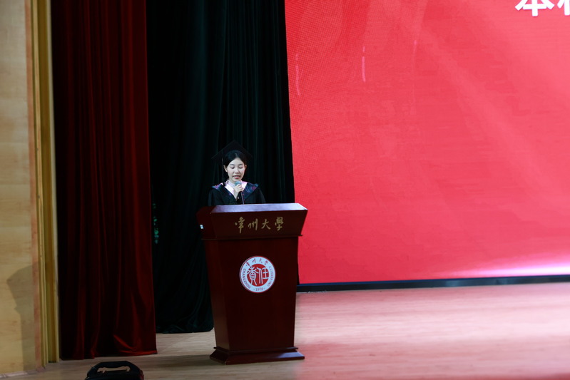 毕业典礼在庄严的国歌声中拉开帷幕。伴随着毕业视频,一曲毕业生改编版《第57次取消发送》唱出了对大学时光的追忆与对离别的不舍。在表彰环节,学院为优秀毕业生、考研先进个人、江苏建设卓越奖教金、江苏建设奖学金获得者颁奖,充分发挥榜样作用,激励学院师生拼搏奋进,昂首向前。歌曲《灯火里的中国》感召毕业学子厚植家国情怀,用文艺之声唱响祖国的大好山河。音乐211班王琬清、Y2219音乐班胡炜分别作为本科生、研究生毕业生代表上台发言,一言一语中无不饱含一路走来的汗水与努力,以及对母校的爱与感激。辅导员罗扶摇作为教师代表上台发言,回顾了与2025届毕业生一同踏入校门的美好时光,寄语毕业学子做一个孝顺、善良、勇敢、快乐的人。舞蹈《阳光下的麦盖提》活力满满,寓意同学们与光同行,元气满满开启全新的征程。
