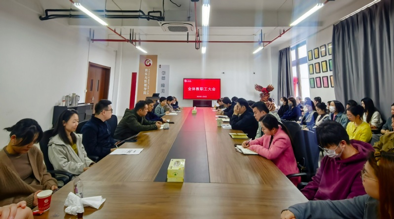 为扎实推进教师思想政治与师德师风建设工作,深入贯彻落实学校相关文件精神,11月5日下午,音乐与影视学院在立行楼442会议室召开全体教职工大会,专题学习并解读学院最新印发的《关于进一步加强音乐与影视学院教职员工思想政治和师德师风建设工作的实施意见》(常大音〔2025〕18号)。会议由学院党委书记唐琳主持,学院全体教师参加。