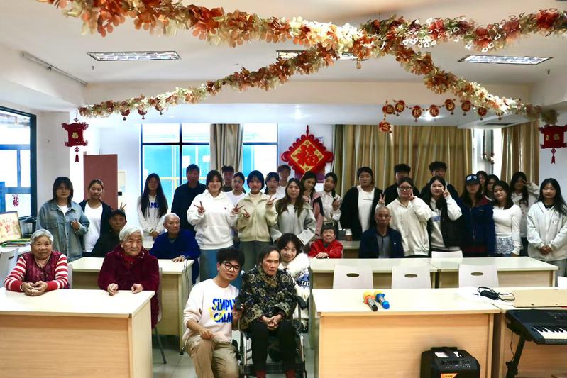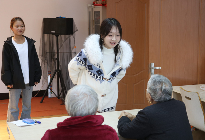 活动当天,颐养家园的多功能厅内暖意融融。学生们怀着热情与敬意,为老人们呈现了一场精心准备的演出。小合唱、民族舞、经典老歌,当青春明亮的嗓音与历经岁月的歌声交融在一起,现场洋溢着跨越年龄的感动与欢乐。除了舞台上的表演,学生們还分组陪伴在老人身边,倾听他们的往事与心声。颐养家园的工作人员表示,这样的活动极大地丰富了老人们的精神生活,“看到他们的笑容,我们由衷高兴。”