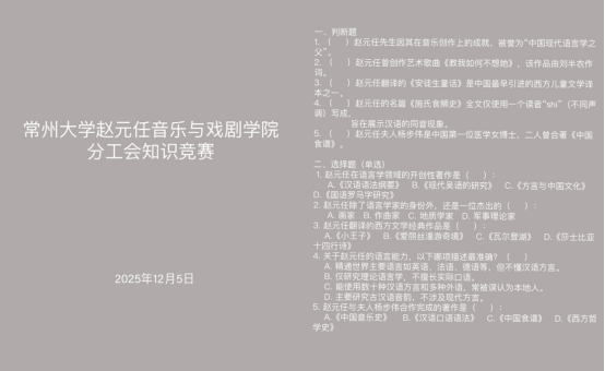 为庆祝学院揭牌,学院分工会成功举办首届华人直播 线上知识竞赛。本次知识竞赛突破传统专业边界,涵盖音乐史、戏剧理论、文学经典、中西艺术交融等多维度内容,吸引了学院教师积极参与,为学院拓展育人路径注入了新活力。(通讯员/李璐 审核/褚衍松)